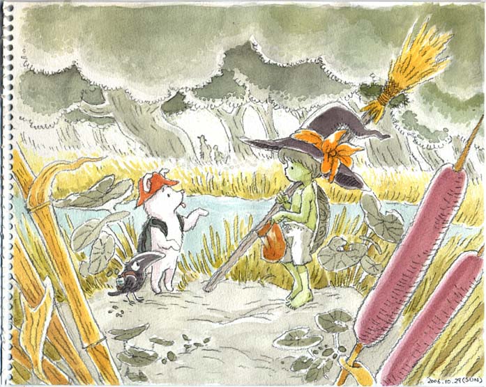 in the water and believed to drag people in it. It looks like a kid, but has a small dish on top of its head, green skin and webfoots like a frog. |