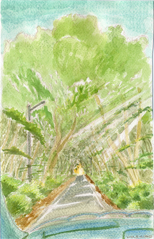 By just going through the tunnel of light, created by the brances of trees,